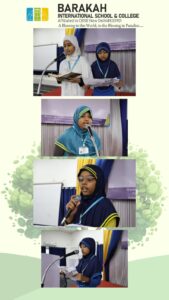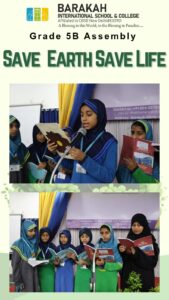 🌳The assembly was conducted by grade 5B on the theme of “Save Earth, Save Life.” The program began with a spiritual start, led by MC Shazfa, who guided the morning Adhkar recitation by a group of girls. This was followed by: