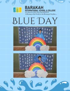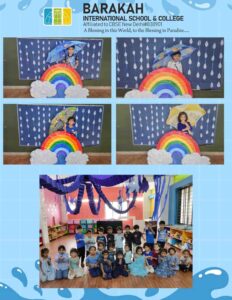 Today on 18-7-2025, Our kindergarten pearls celebrated Blue Day and Rainy Day with great delight.The kindergarten pearls came dressed in their best blue outfits, with the umbrella and rain coat.