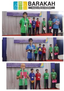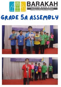 ❇️The Grade 5A morning assembly commenced with a serene prayer recitation by Sinan, Shifan, Aahil, and Auf, followed by Hadith recitation by Ramlan 🍀. Azhar Hussain then presented the English news, keeping everyone informed about global events.