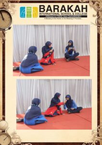 📌The presentation segment included a short skit with Nazneen as the narrator, Anum Ashraf as the clock, Zulaika as the lazy student, Diya and Rifa as other students, and Minha portraying the teacher. The skit was well-received and clearly illustrated the consequences of misusing time.