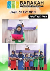 🕯️The students of Class 3B conducted a respectful and inspiring assembly on the occasion of Martyrs’ Day to honor the brave freedom fighters who sacrificed their lives for the nation.