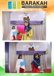 🕯️A powerful skit depicting the lives and sacrifices of Mahatma Gandhi, Bhagat Singh, Rajguru, and Sukhdev was performed by the students, with narration by Aysha Shanum. The performance left the audience deeply moved and conveyed a strong message of patriotism and courage.